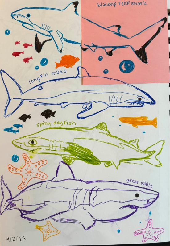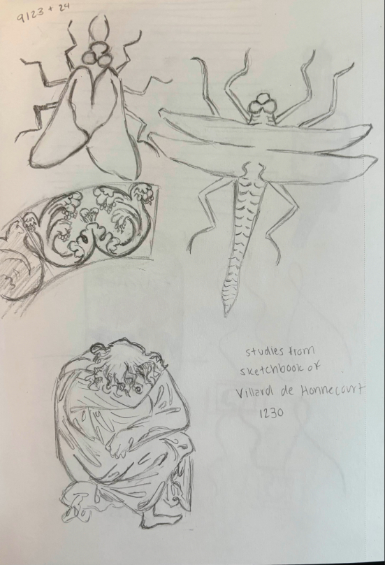 10/4/25: hi hello again, a little late posting this month's art update because i simply have not been in the mood to bother making it. but now i am yay! here's some sillay drawings i did with those sick felt tip pens. my partner got me a pack with a bunch of colors for my birthday and i've been using them nonstop. there's also a page of pencil studies of a cool sketchbook i found out about from an art history textbook i have. there are pdfs of the whole thing online, but i think it's from the 12th/13th century? anyway this guy did some sick drawings but we don't know a lot about him which is neat.